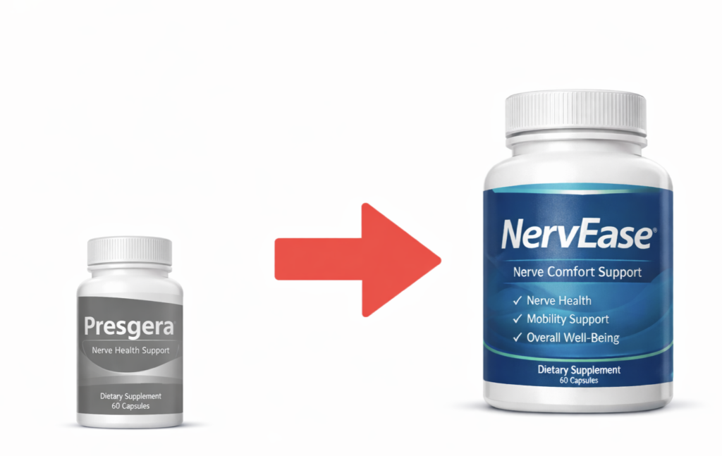 We understand you were interested in Presgera, but we’re excited to introduce NervEase as a modern alternative. We’ve kept the core approach people look for in nerve support and refined it with an updated formula designed to better support nerve comfort, mobility, and overall well-being. NervEase is crafted to deliver an improved experience while maintaining the natural support you expect from this category.